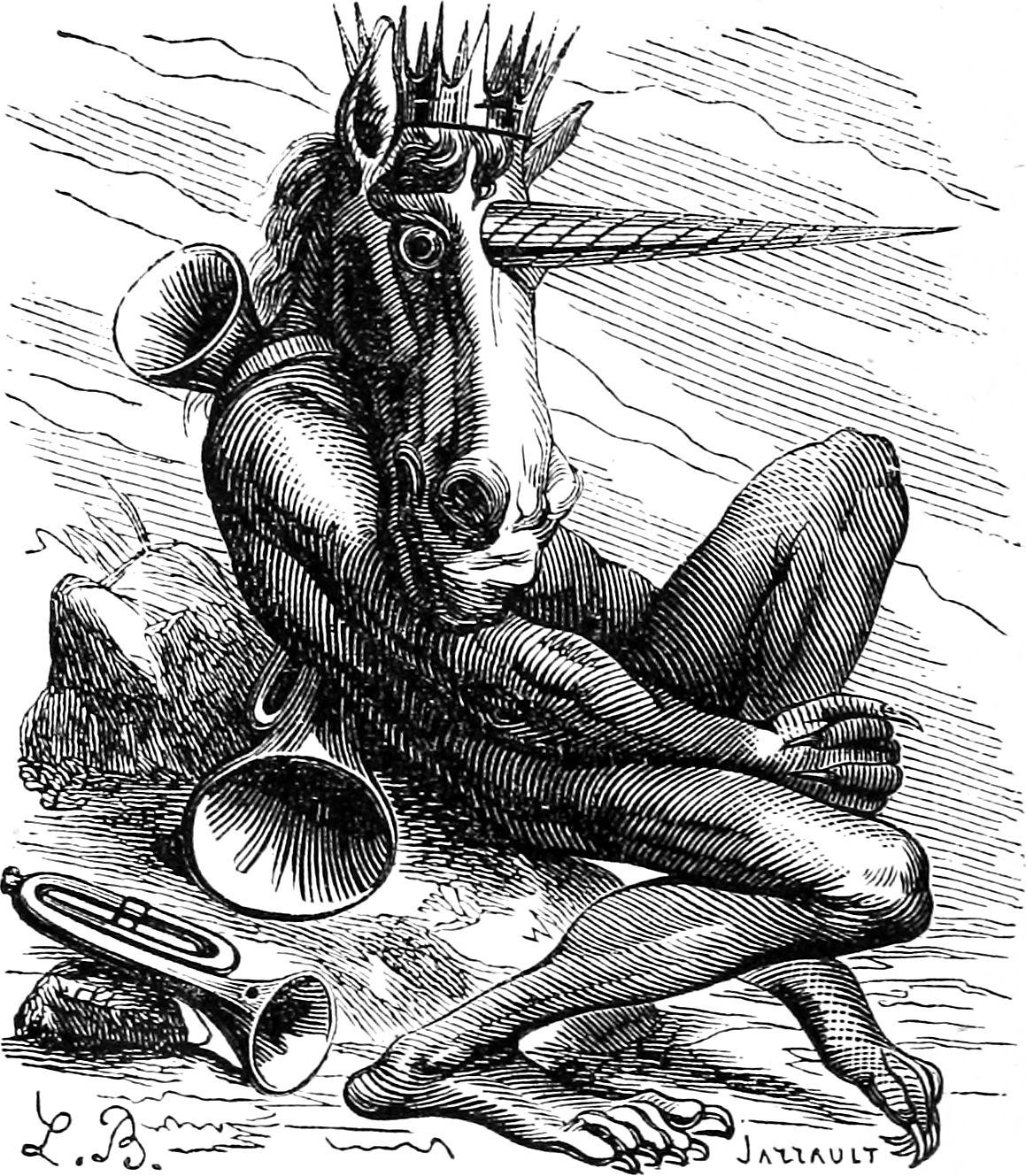 Amdusias has 29 legions of demons and spirits under his command and has the rank of Great King. He is depicted as a human with claws instead of hands and feet, the head of a unicorn, and a trumpet to symbolize his powerful voice.