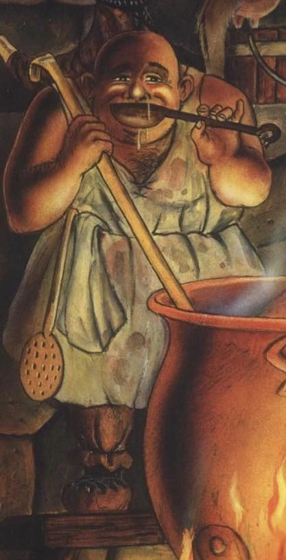 Andhrímnir is the chef of the Æsir. He resides in Ásgarðr and, every day, kills Sæhrímnir the boar (who is revived nightly) who is cooked in Eldhrímnir the kettle to make meat for the Æsir to eat. He also makes mead by milking Heiðrún the goat.