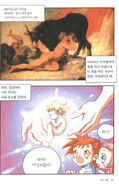 | Hár svarar: "Hon sleikti hrímsteinana er saltir váru. Ok hinn fyrsta er hon sleikti steina, kom ór steininum at kveldi manns hár, annan dag manns höfuð, þriðja dag var þar allr maðr. Sá er nefndr Búri." | And Hárr made answer: "She licked the ice-blocks, which were salty; and the first day that she licked the blocks, there came forth from the blocks in the evening a man's hair; the second day, a man's head; the third day the whole man was there. He is named Búri." |