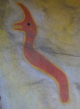 Avanyu or Awanyu is a Tewa deity, the guardian of water. Represented as a horned or plumed serpent with curves suggestive of flowing water or the zig-zag of lightning, Awanyu appears on the walls of caves located high above canyon rivers in New Mexico and Arizona. Avanyu may be related to the feathered serpent of Mesoamerica–Quetzalcoatl and related deities. Avanyu is a frequent motif on Native American pottery of the Southwestern United States.