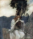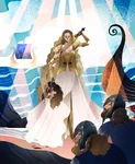 Brynhildr, now awaken as a human woman, introduces herself to Sigurðr.