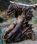 The Chupacabra is a legendary cryptid rumored to inhabit parts of the Americas. The name comes from the Spanish word that means "Goat Sucker". As it's name implies rumors of such a possible creature, came to be due to several instances in which livestock in rural areas were found dead, drained of blood with nothing but to puncture marks on carcases. These incidents are associated with relatively recent sightings of an unknown animal in Puerto Rico (where these sightings were first reported), Mexico, and the United States, especially in the latter's Latin American communities.