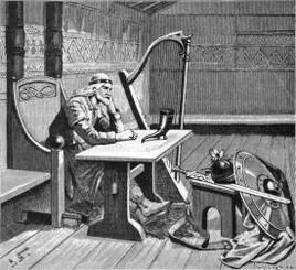 In Atlakviða, Atli invites Hǫgni and Gunnarr to his hall, claiming to wish to offer them great riches, but actually intending to kill them. Gunnarr decides to come although Guðrún has sent them a warning. They cross through Myrkviðr on their way to Atli's court. Once they arrive, Atli captures Gunnarr and Hǫgni. He demands Gunnarr's hoard of gold, but Gunnarr says he will not tell Atli until Hǫgni is dead. Atli then kills Hǫgni and brings his heart to Gunnarr, who laughs and says now only he knows the secret of the hoard's location. He refuses to tell Atli, so Atli has him thrown into a snake pit. Gunnarr plays his harp there until he is bitten by a snake and dies.[1]