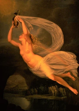 Her parents are both sea deities; Thaumas and Electra. Iris is sometimes the sister of the Harpies; Aello, Podarge, Celaeno and Ocypete. Another of her sisters is Arke, the messenger goddess of the Titans. Iris has golden wings, while Arke's wings are iridescent. Epithets ascribed to her include "chrysopteron" (golden-winged) and "Thaumantias" (daughter of Thaumas).
