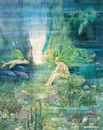 Similar creatures to mermaids can also live in lakes and rivers. In Slavic mythology there are the Rusalki, the spirits of young women who have met their fate through drowning. They appear in the form of beautiful fish-women or mermaids. They have lovely hair, fine features but sad fathomless eyes which tell their tragic tale. They entrance young men, taking them to the river floor to live with them.