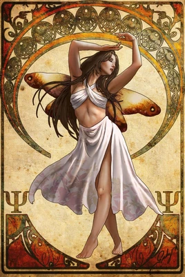 Psyche (Ψυχή), in Greek mythology, was a mortal of great unrivaled beauty even comparable to Aphrodite, the goddess of beauty. She eventually became the goddess of souls, being deemed worthy of immortality after completing a series of impossible tasks and due to the undying love of Eros, her husband. She is also the mother of Hedone.