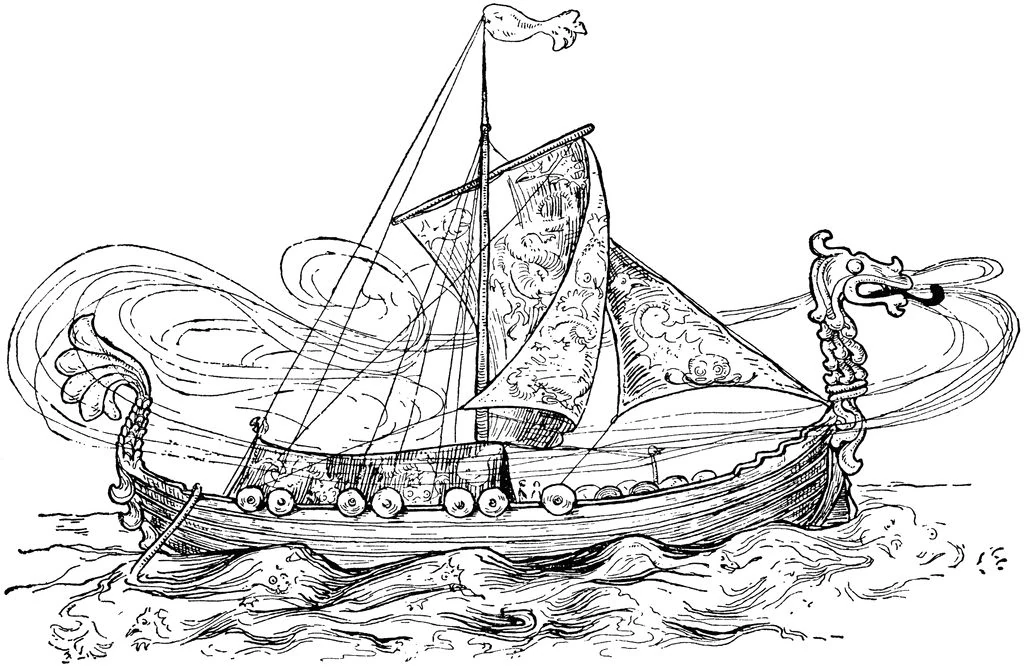 The boat is first directly addressed in chapter 43; there Gangleri asks that, if Skíðblaðnir is the best of ships, what there is to know about it, and asks if there is no other ship as good or as large as it. High responds that while Skíðblaðnir is the finest ship and the most ingeniously created, the biggest ship is in fact Naglfar, which is owned by Muspell. The Sons of Ivaldi, who High adds are dwarfs, crafted the ship and gave it to Freyr. High continues that the ship is big enough for all of the gods to travel aboard it with wargear and weapons in tow, and that, as soon as its sail is hoisted, the ship finds good wind, and goes wherever it need be. It is made up of so many parts and with such craftsmanship that, when it is not needed at sea, it may be folded up like cloth and placed into one's pocket. Gangleri comments that Skíðblaðnir sounds like a great ship, and that it must have taken a lot of magic to create something like it.[1]