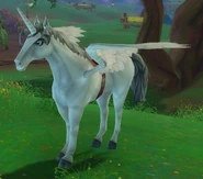 A winged unicorn (or flying unicorn Also known as Alicorn, Alaricorn and Unipegasus) is a fictional horse with wings and a horn, and may be a variant from either the more well known Pegasus, and/or unicorn.