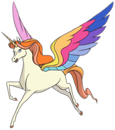 - The Alicorn with rainbow coloration named "Swift Wind" is found in the animated series of She-Ra